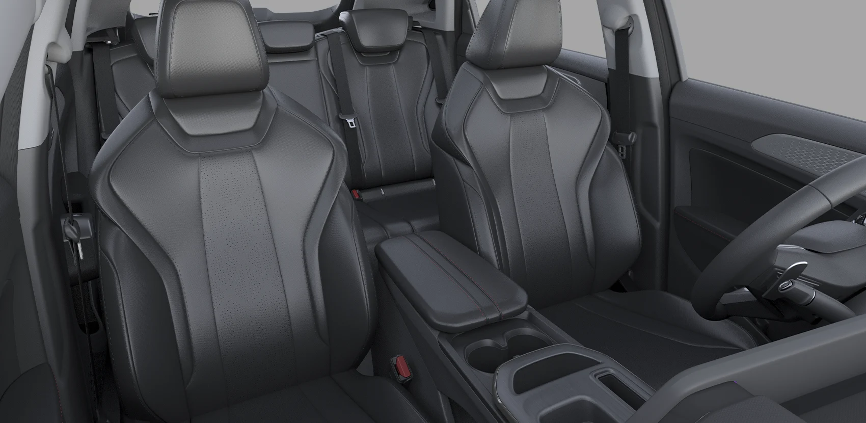Interior de una Jolion Max. Volante, tablero y asientos de cuero negro. Diseño moderno y elegante.