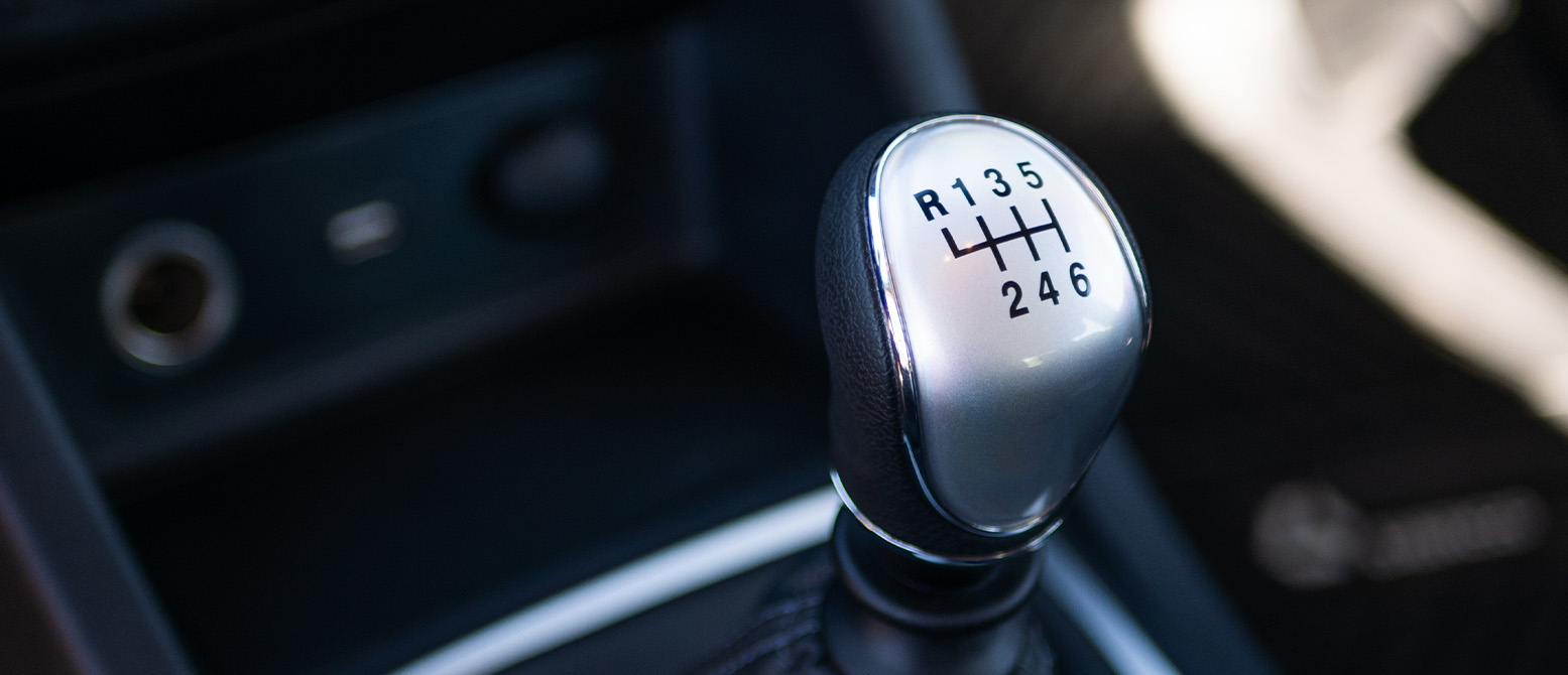 Palanca de cambios de un auto. Cambio manual en primer plano.
